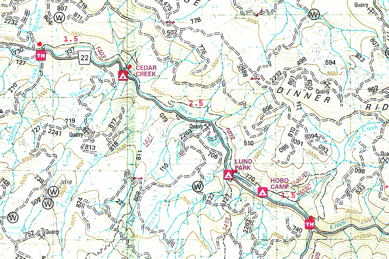 | Misc: | Nearby trails to consider off of Brice Creek Road are: Crawfish Trail, Adams Mountain Trail, Trestle Creek Trail, Upper Trestle Creek Trail, and Parker Falls Trail