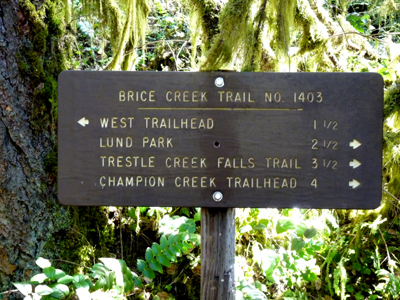 | Notes: | Brice Creek Trail is an interesting trail that runs alongside of very scenic Brice Creek. With a couple of bridged trailheads in the middle it offers a variety of options for the length of the hike.